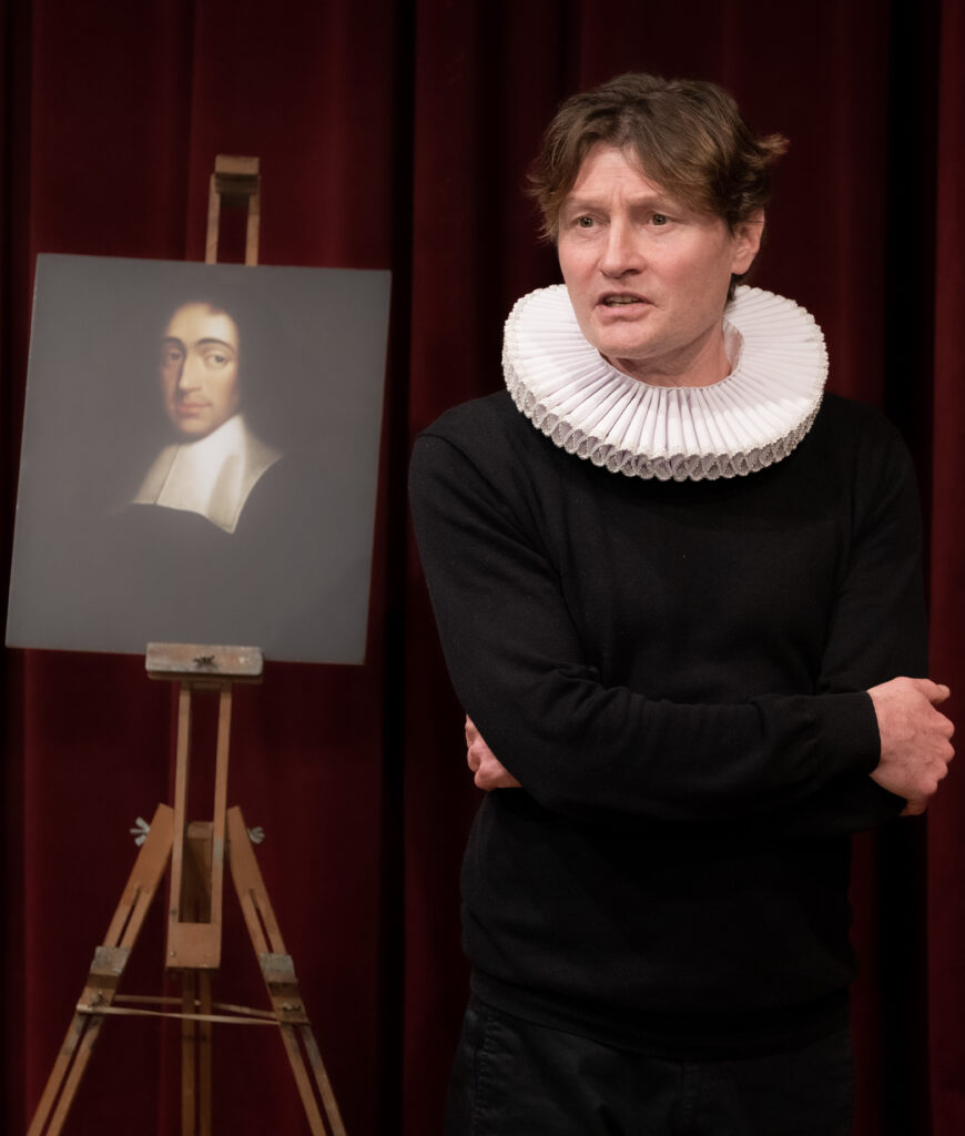 Ik was zeer onder de indruk van filosoof/acteur Harpert Michielsen, die een leerzame, onderbouwde en ludiek gebracht solo-optreden gaf. Zijn optreden is 2-ledig: hij spreekt als Spinoza en over Spinoza. Ik heb genoten!